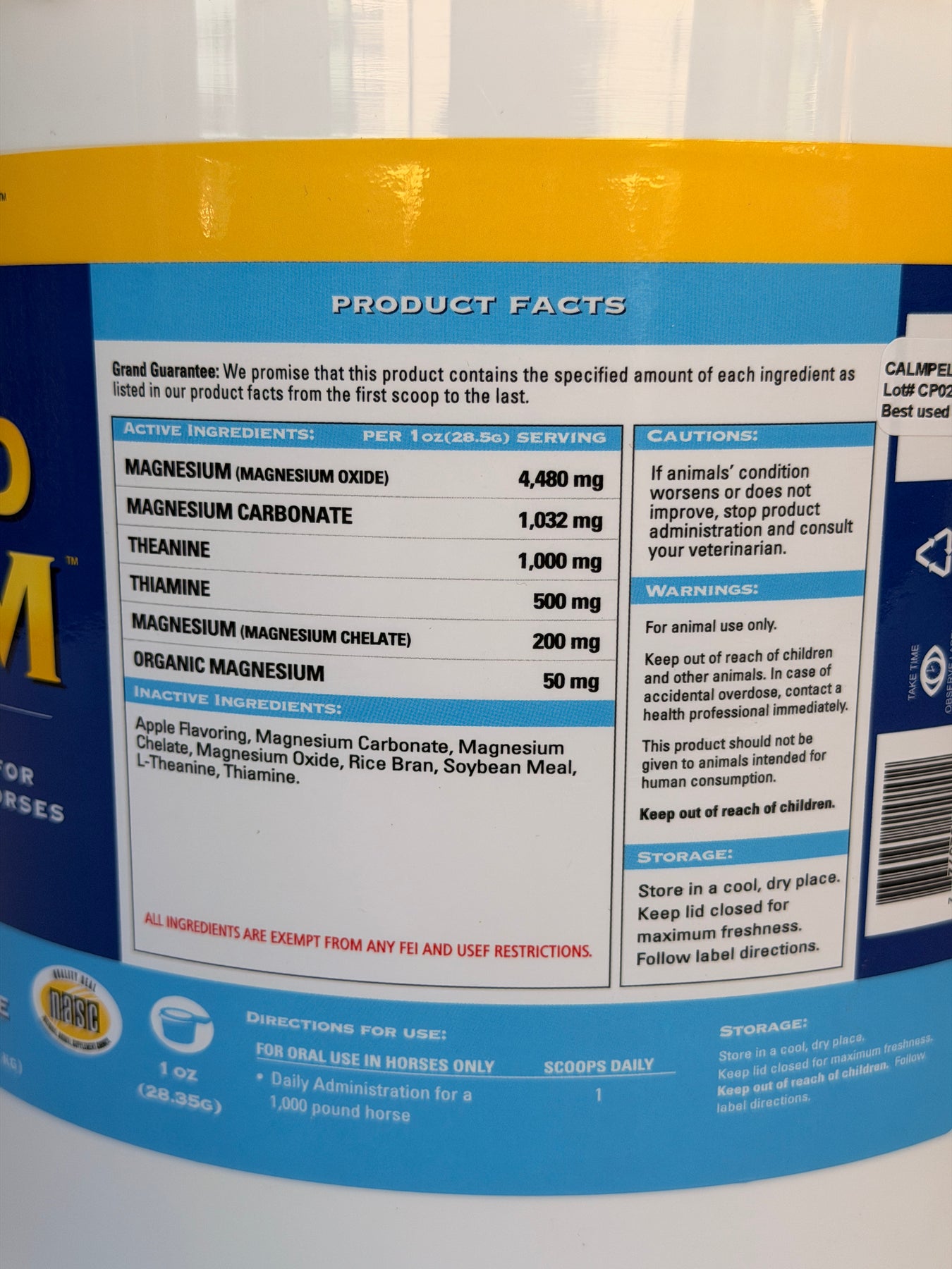 Riding and preparing your horse for a casual trail ride, exercise, and training, or participating in a show should be fun for you and your horse. A hard-to-handle, spooky, stressed-out horse will quickly ruin your enjoyment and affect the outcome of your ride or performance. Grand Calm is a unique calming pellets for horses that is drug-free and non-herbal. The formula contains 4 different sources of magnesium that provide maximum bioavailability which broadens the effects of the magnesium. Grand Calm’s equine supplements for calming formula also include the amino acid Theanine, which is well documented as an aid to relaxation. Grand Calm will help control nervousness in horses that are tense, spooky, and inattentive.